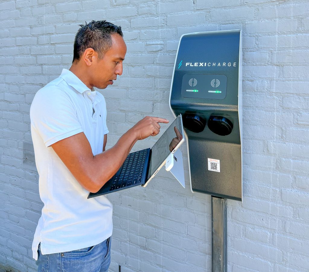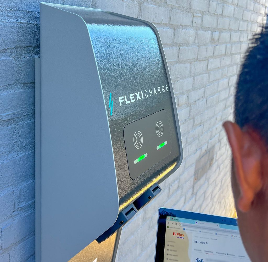 Onze collega Doan heeft zojuist de laatste hand gelegd aan de installatie van 10 nieuwe dubbele laadpalen.